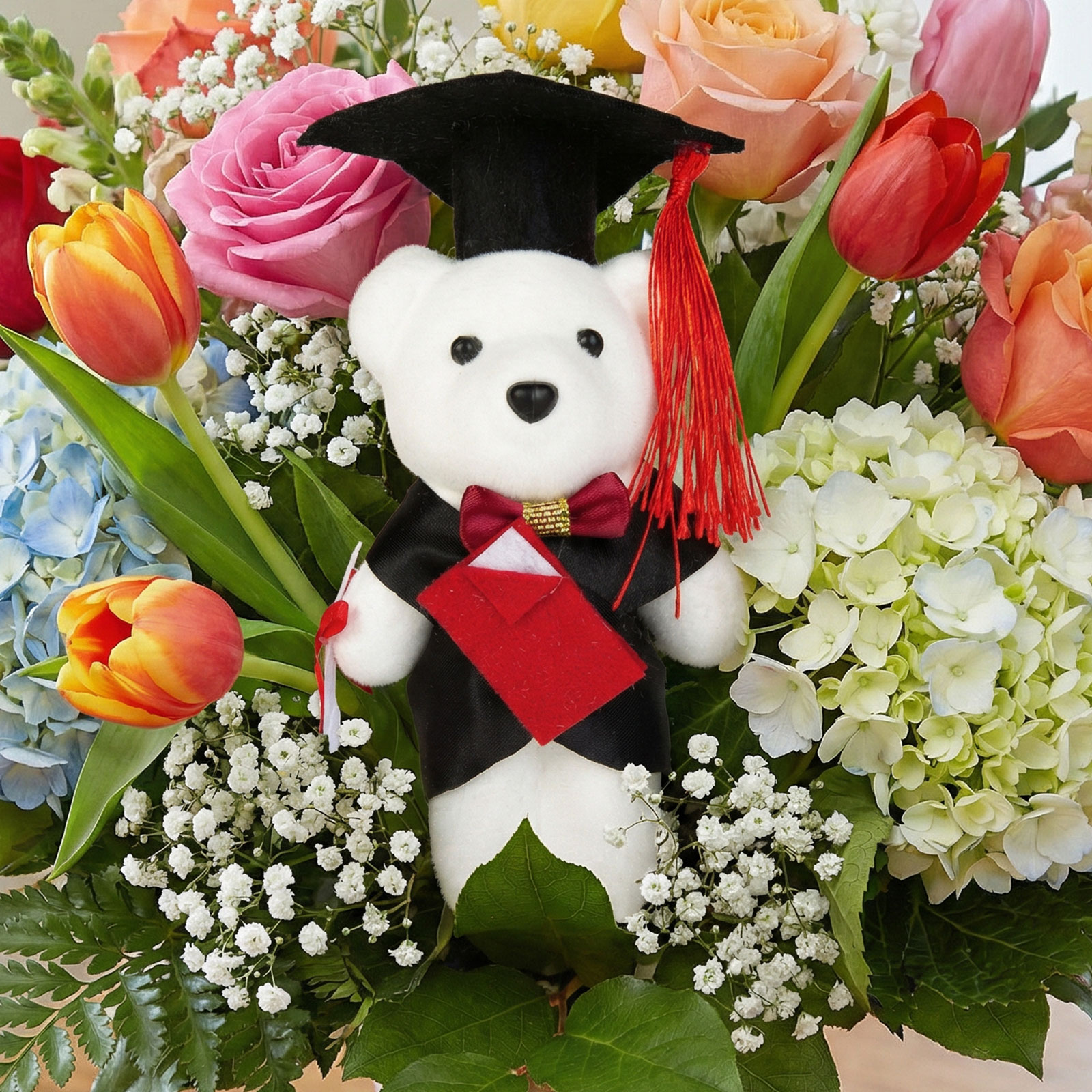 Elegáns és emlékezetes ajándék minden frissen végzett számára. A diplomás maci polisztirol testtel készült, és ünnepi talárt, masnit, valamint filc ballagási sapkát visel, így tökéletesen szimbolizálja a tanulmányok sikeres befejezését. Kompakt méretének köszönhetően könnyen elhelyezhető íróasztalon, polcon, virágcsokorban vagy akár emlékdíszként vitrinben is.