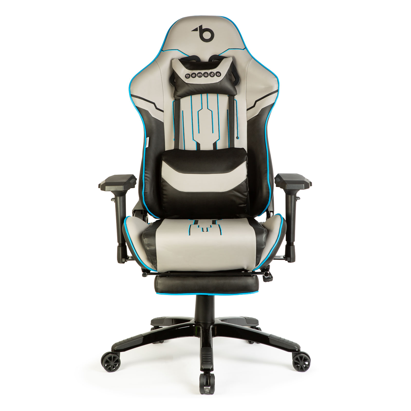 Extrán párnázott, premium megjelenésű gamer szék, amely a kényelem és a funkcionalitás tökéletes kombinációját kínálja. A háttámla 90 és 180° között dönthető, így pihenéshez és munkához egyaránt ideális. Az ergonomikus kialakítású, kopásálló PVC bevonattal és a formázott habszivaccsal ellátott ülés hosszú órákon át kényelmes munkavégzést vagy játékot biztosít. A szék 4D karfákkal, állítható fejtámasszal, deréktámasszal és kihúzható lábtartóval van felszerelve. Stabilitását a robosztus acélváz és az 5 ágú lábcsillag biztosítja.