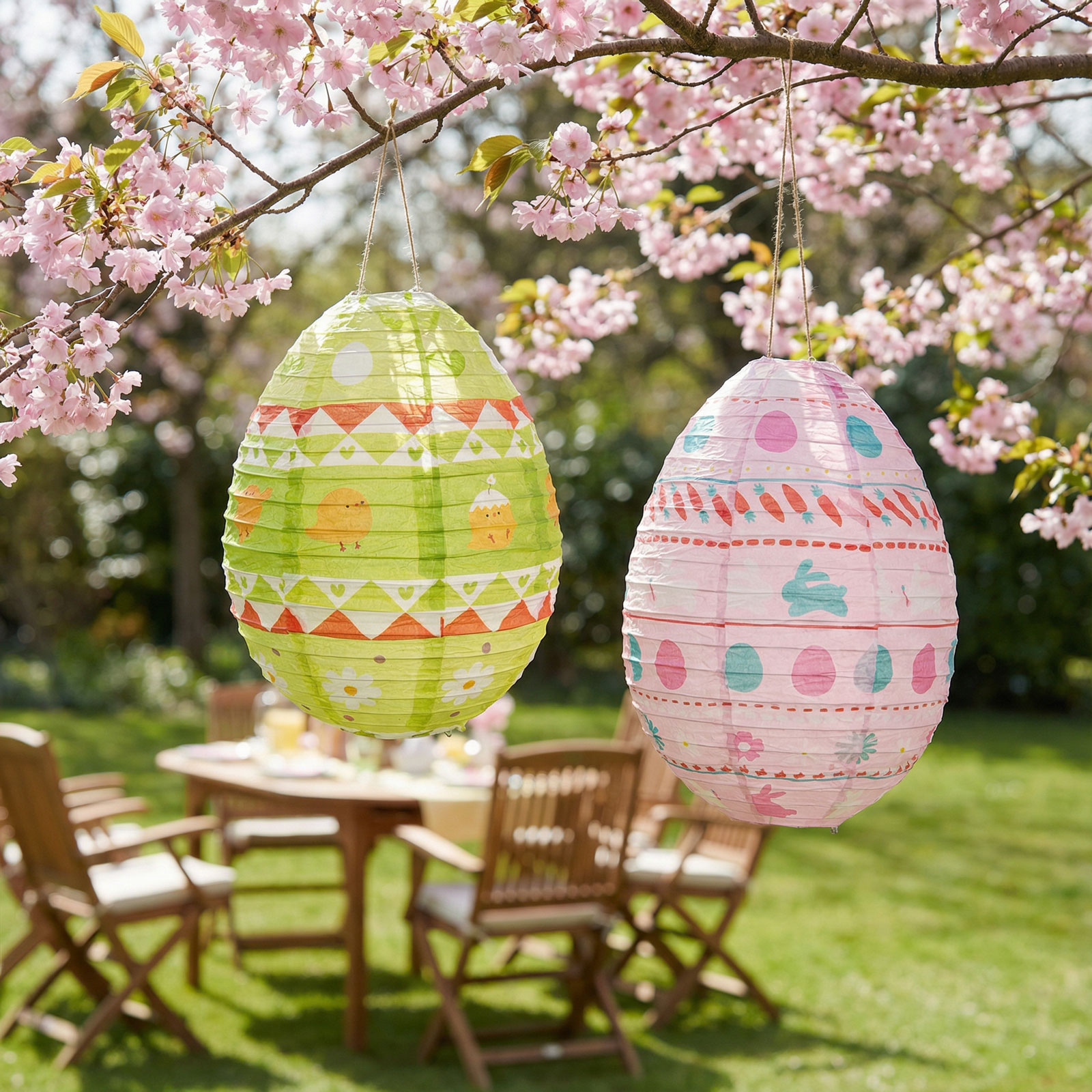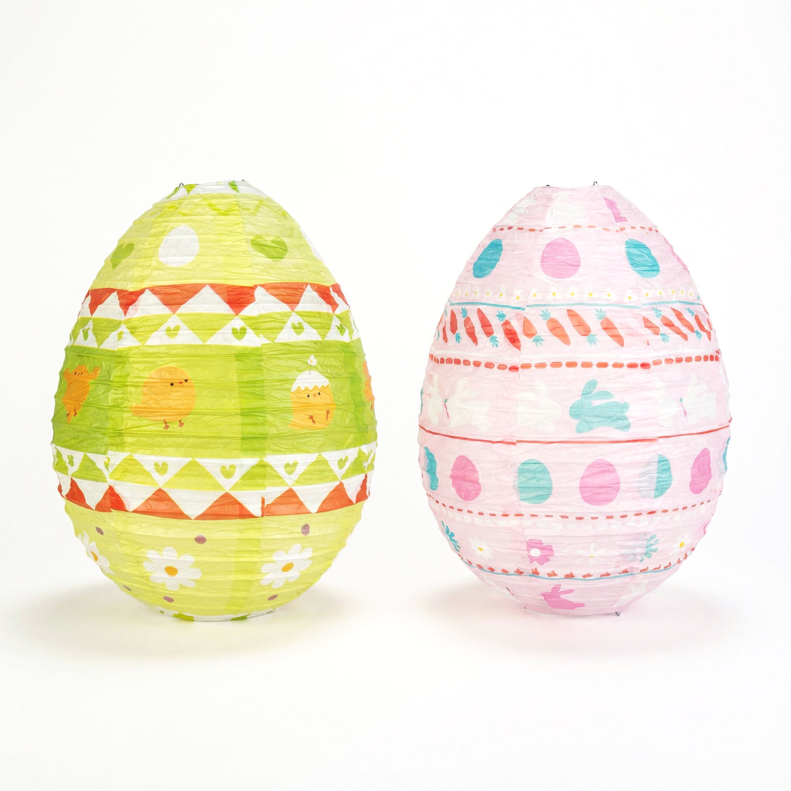 Dobja fel otthonát ezzel a bájos, tojás alakú húsvéti lampionnal! A vidám, tavaszi mintákkal (nyuszik, csibék, virágok, tojások) díszített papír lampion kiváló választás húsvéti dekorációként, beltérre vagy fedett teraszra. Könnyű, praktikus és gyorsan összeállítható, így ideális tavaszi partik, ünnepi asztalok vagy ablakdekorációk kiegészítőjeként. Kétféle színben elérhető: zöld és rózsaszín.