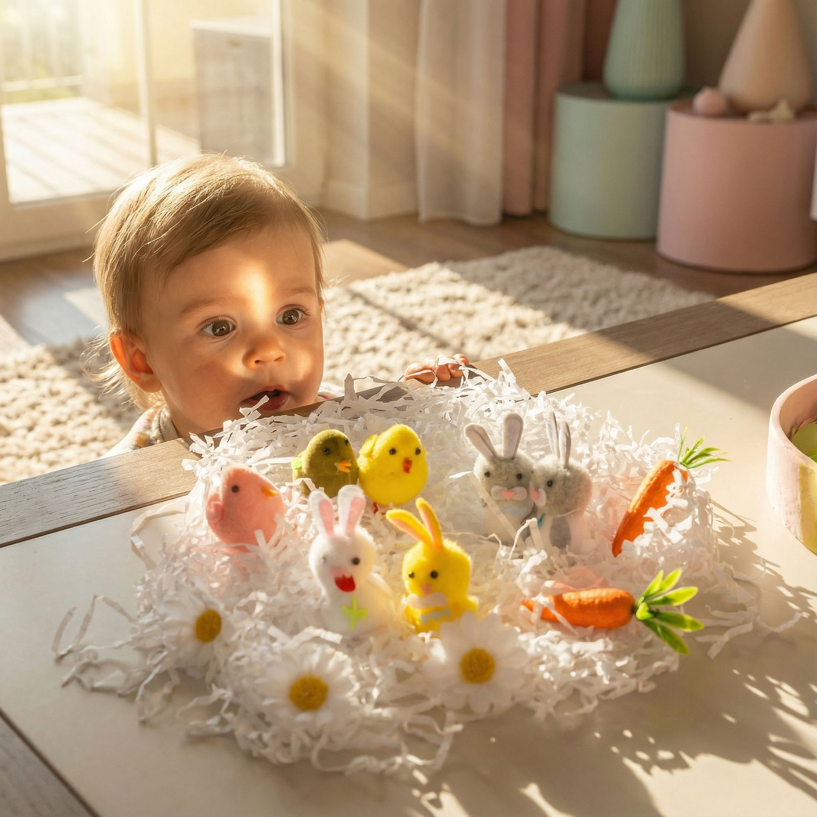 Teremtsen vidám, ünnepi hangulatot otthonában ezzel a bájos húsvéti dekorációs szettel! A szett különféle aranyos kiegészítőket tartalmaz, mint például nyuszik, csibék, répák, pillangók és virágdíszek, melyek tökéletesek kosarak, terítékek vagy kompozíciók díszítéséhez, összeállításához. A színes, részletgazdag elemek játékossá és hangulatossá varázsolják a lakást a tavaszi és húsvéti időszakban.