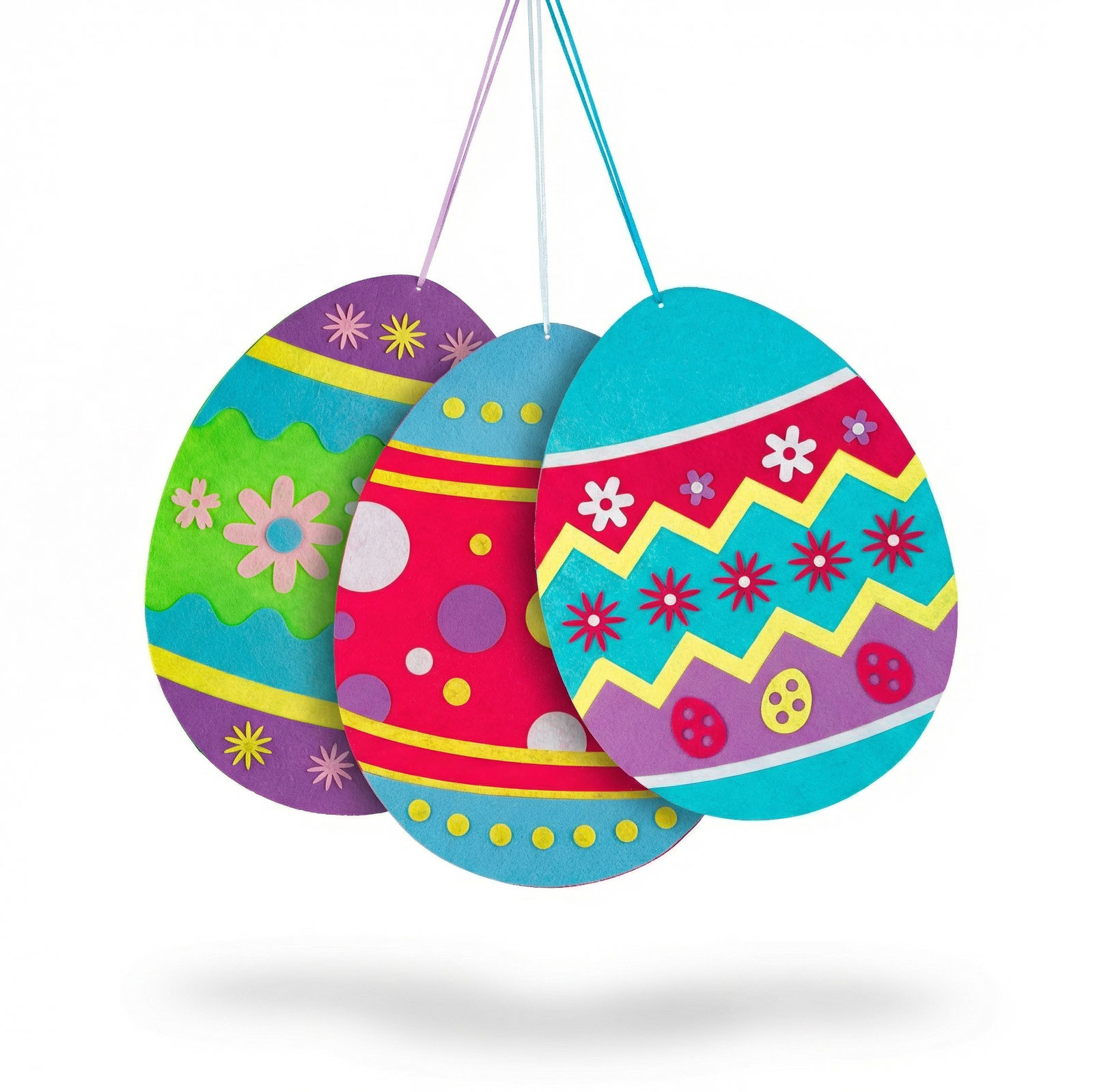 Dobja fel otthonát vagy rendezvényét ezzel a színes, tojás alakú filc függődísszel! A dekoráció vidám, 3D hatású mintákkal és élénk színekkel díszített, amelyek azonnal tavaszi, ünnepi hangulatot teremtenek. Praktikus akasztóval van szerelve, így könnyedén felhelyezhetők ajtóra, falra, ablakra.