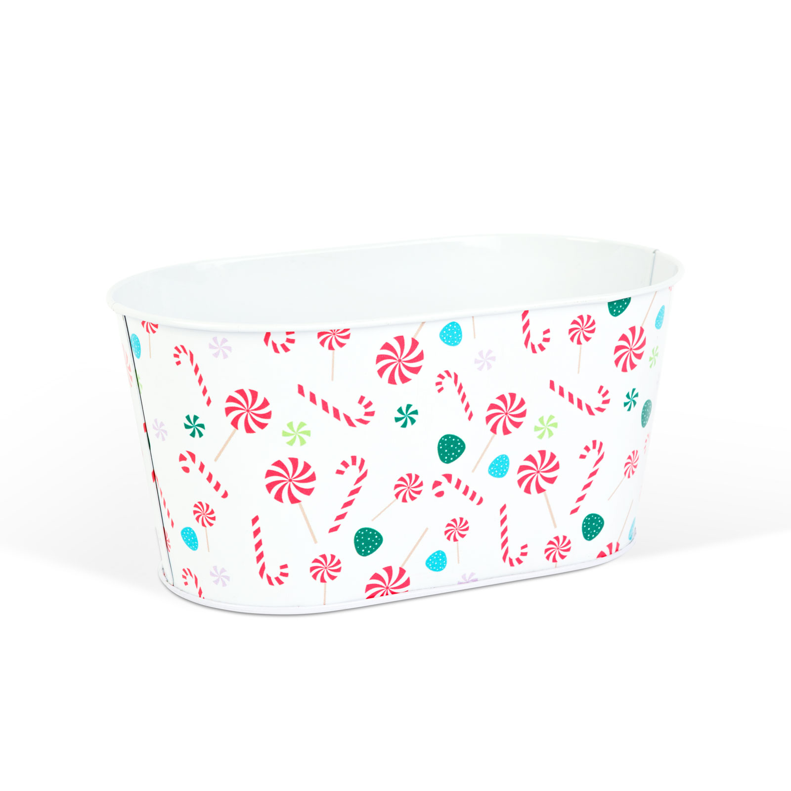 Karácsonyi fém kosár – cukorbot mintás – 19 x 11,5 x 9,5 cm 59722C