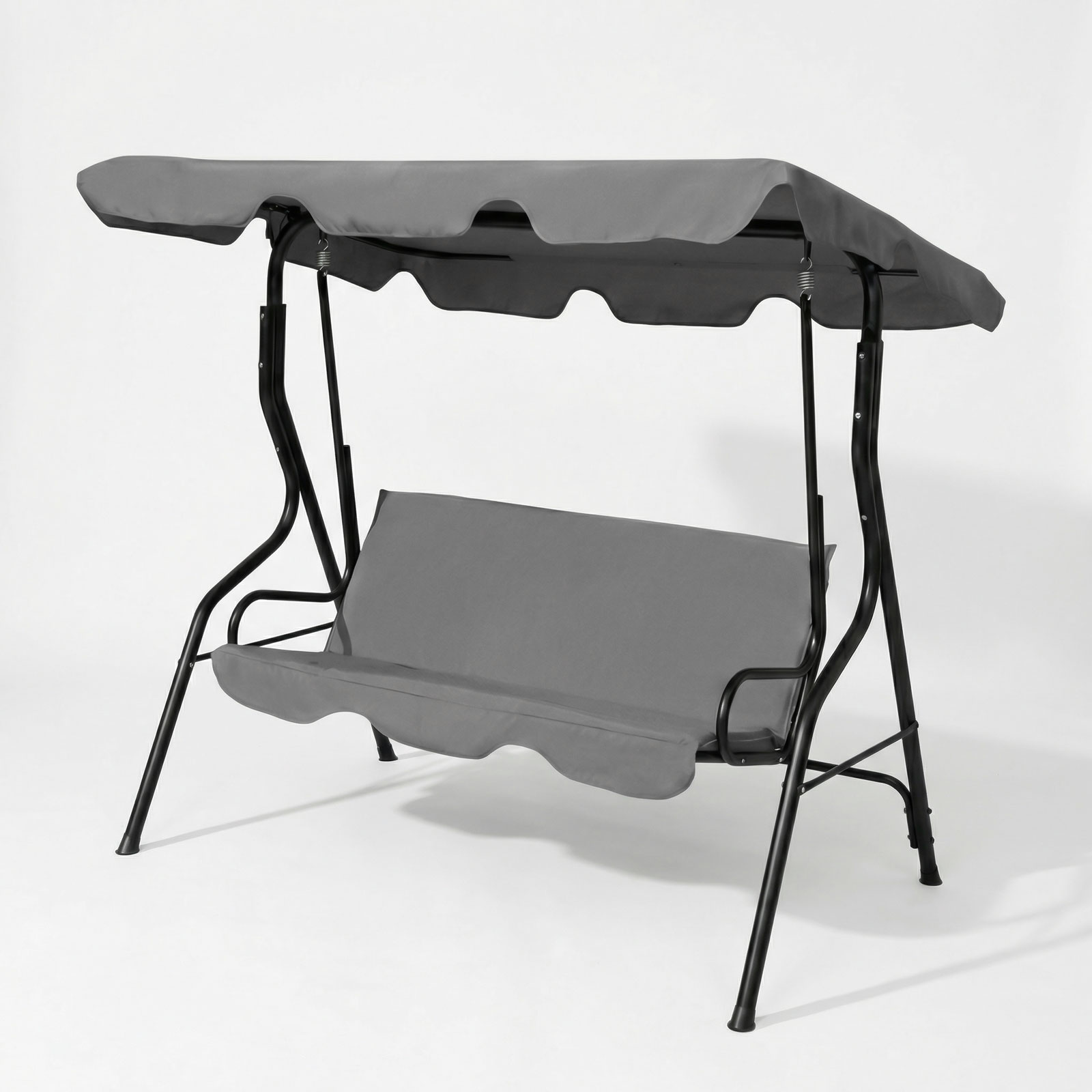 Stabil szerkezetű, stílusos megjelenésű kerti hintaágy akár 3 fő pihenését is garantálja! Ideális választás kertekbe, teraszokra, vagy akár strandokra is! Modern kialakításával és stabil fémszerkezetével garantáltan kiemelkedik majd a kerti bútorok közül. Az időjárásálló kivitelnek köszönhetően a hinta ellenáll az időjárás viszontagságainak, biztosítva hosszú élettartamát.