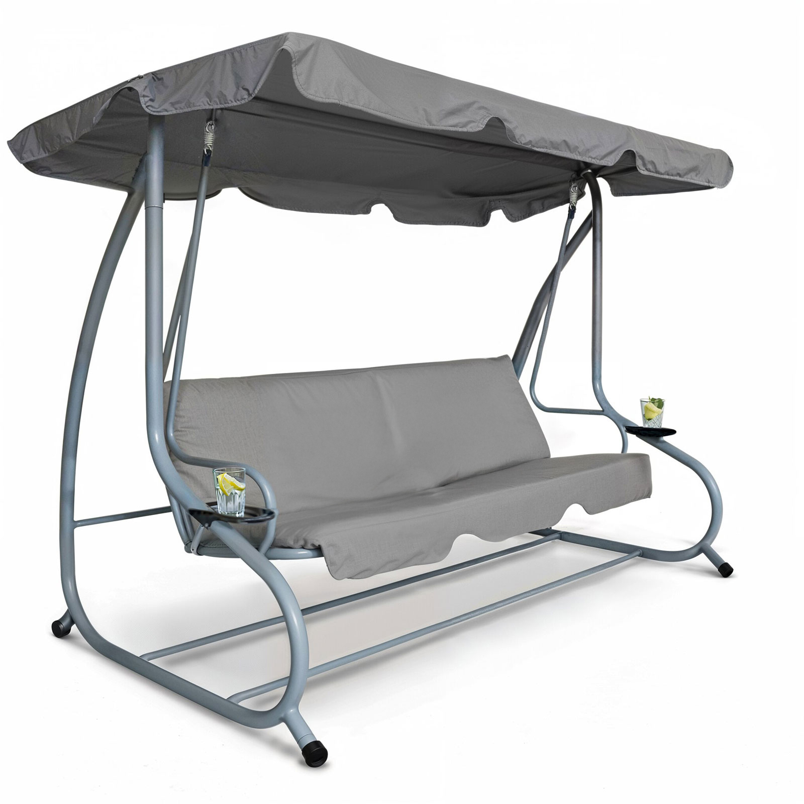 Stabil szerkezetű, stílusos megjelenésű kerti hintaágy akár 3 fő pihenését is garantálja! Ideális választás kertekbe, teraszokra, vagy akár strandokra is! Modern kialakításával és stabil fémszerkezetével garantáltan kiemelkedik majd a kerti bútorok közül. Az időjárásálló kivitelnek köszönhetően a hinta ellenáll az időjárás viszontagságainak, biztosítva hosszú élettartamát.