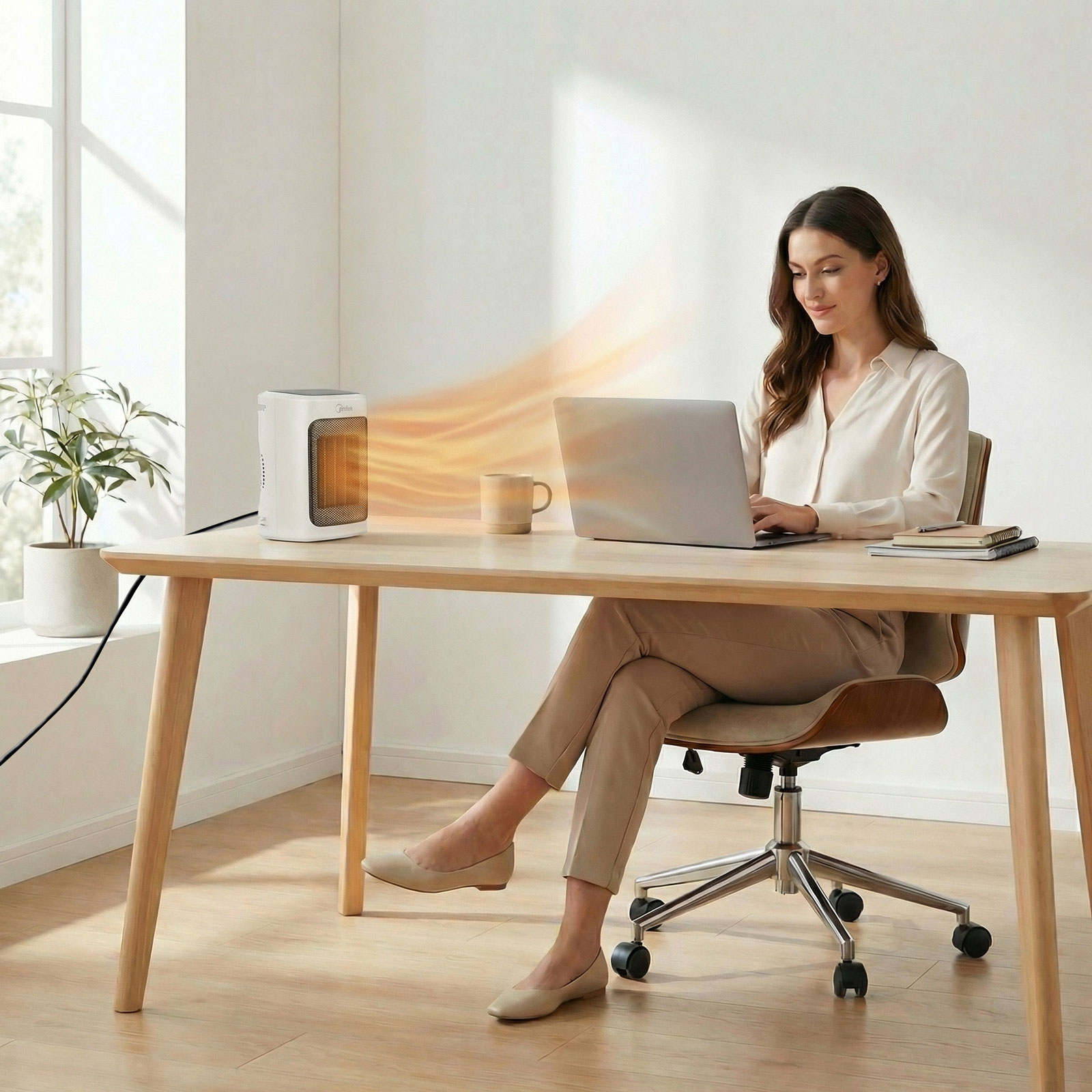 A Midea NT20-20AR mini hősugárzó kompakt méretben nyújt, gyors, kényelmes kiegészítő fűtést otthonában vagy irodájában. A PTC kerámia fűtőelem egyenletes hőérzetet biztosít, a digitális termosztát pedig segít stabilan tartani a beállított hőmérsékletet. A 3 fűtési fokozat és a ventilátor üzemmód rugalmas használatot ad az év különböző időszakaiban, a 24 órás időzítő pedig kényelmessé teszi a napi rutint.