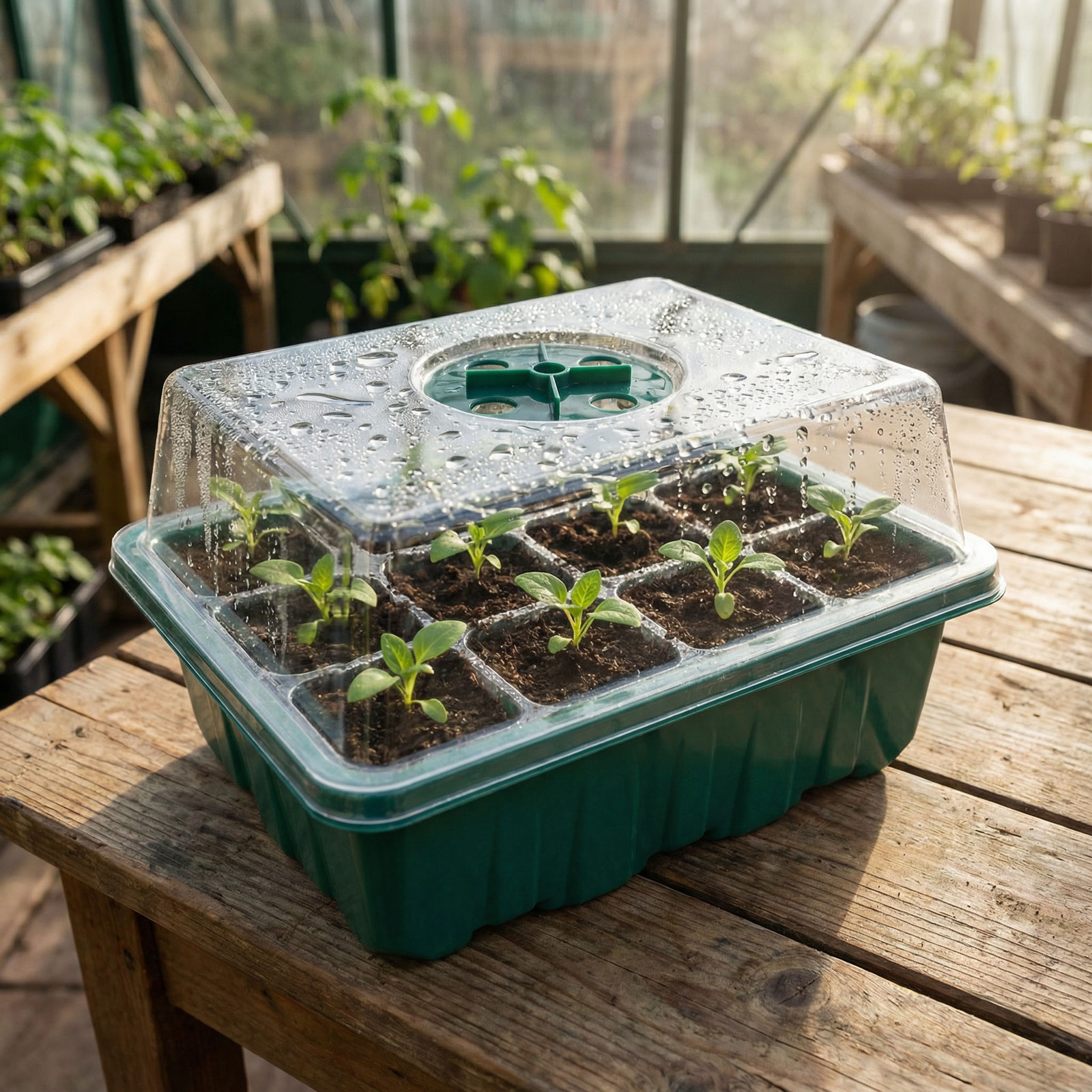 Nevelje magról növényeit ezzel a praktikus, tetős palántanevelő szettel! A 15,3 x 11,4 x 18,5 cm-es mini üvegház stabil, páradús mikroklímát teremt, így a magok egyenletesebben csíráznak, a palánták pedig erősebbek lesznek. Az átlátszó fedél alatt folyamatosan szemmel tarthatja a fejlődést, a tetején lévő állítható szellőzővel pedig szabályozhatja a páratartalmat és a levegőcserét. A strapabíró, merev alsó tálca tisztán tartható, könnyen mozgatható és évekig újrahasználható.