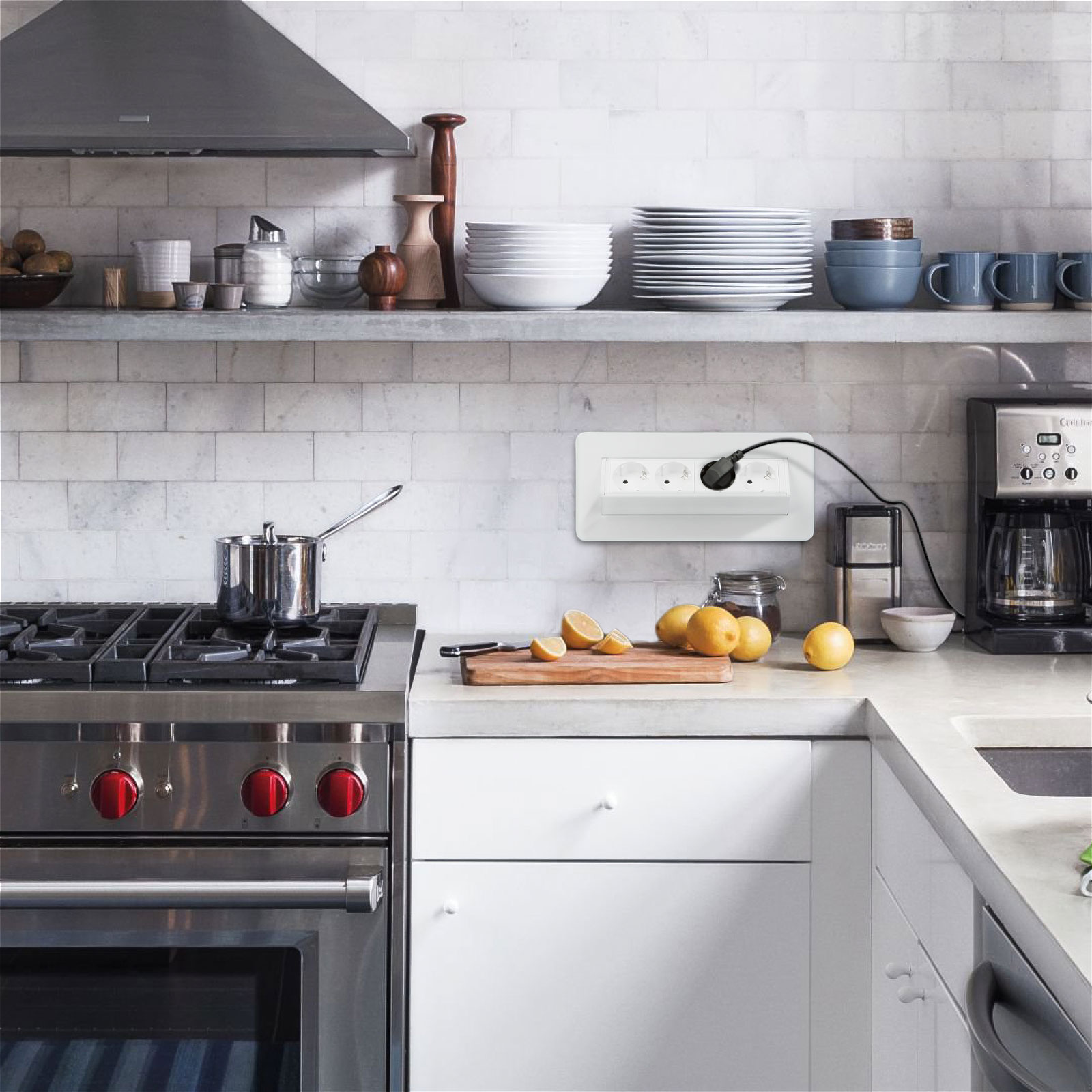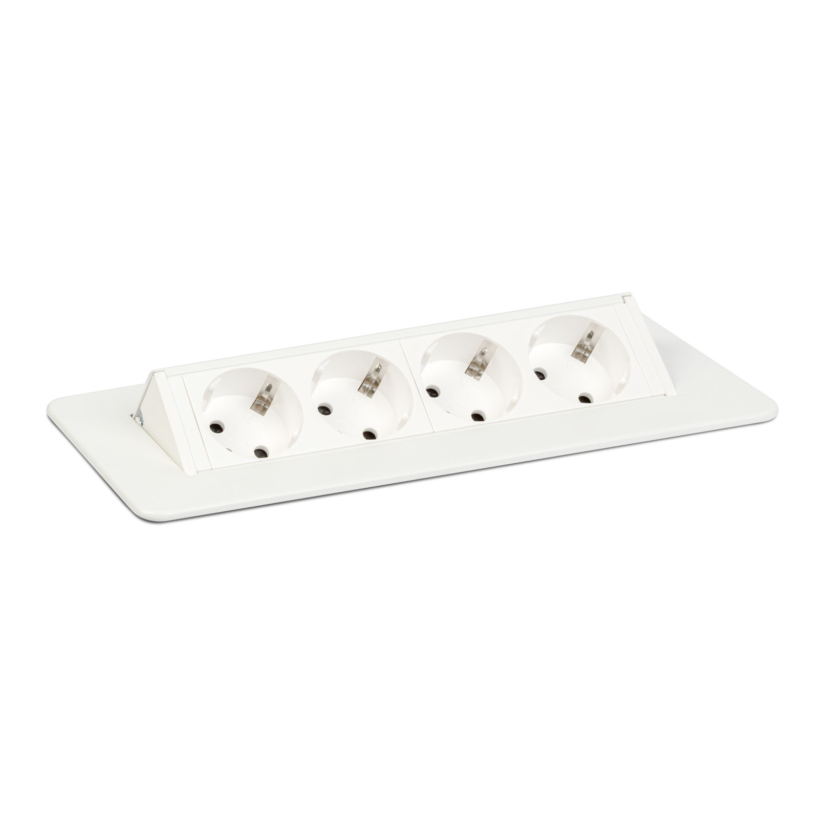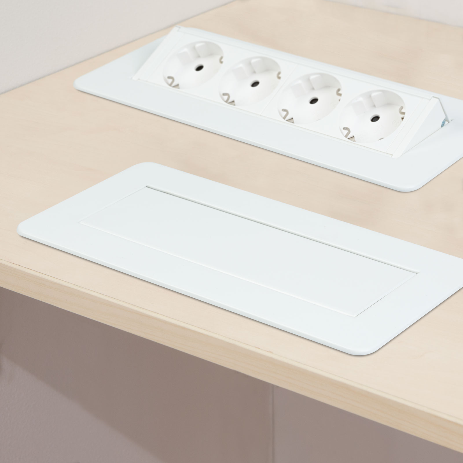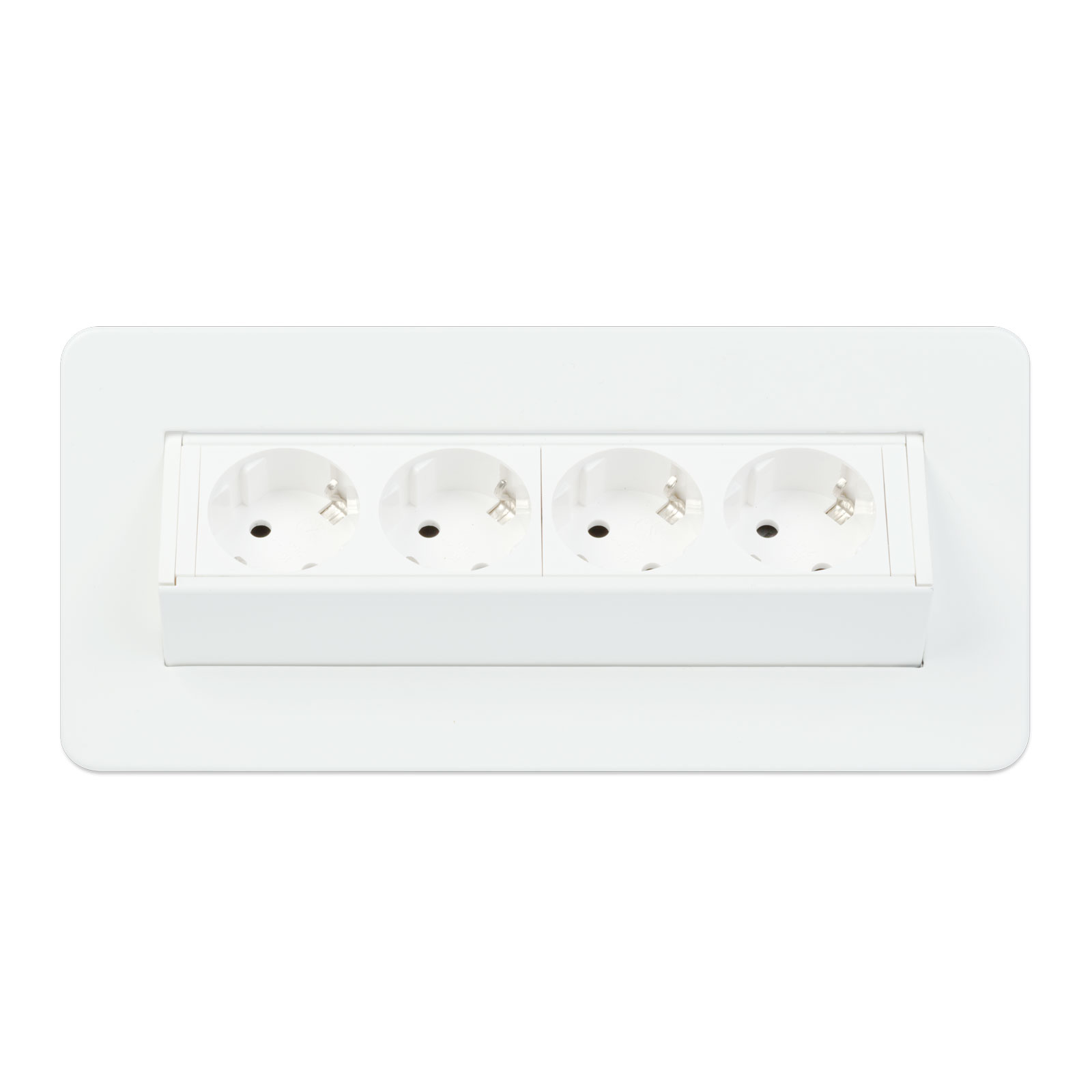 Süllyeszthető elosztó irodai és otthoni felhasználásra, matt fehér felülettel, 4 db gyermekvédelemmel ellátott aljzattal. Asztala, bútora legyen mindig elegáns és rendezett, mégis funkcionális. A rejtett elosztó kiváló megoldás lehet ha már például kész konyhával rendelkezik, de nincs elegendő konnektor a kívánt helyen. Ilyenkor falvésés és villamos hálózat bővítés nélkül, remek alternatíva lehet egy rejtett elosztó. Egy mozdulat és máris rendelkezésre áll 4 szabad konnektor. Ideális lehet olyan elektromos eszközökhöz, amit nem folyamatosan használunk, kenyérpirító, vízforraló… Ha használaton kívül vannak, az „flip-up” elosztó egy mozdulattal elrejthető, ezzel is megkönnyítve például a takarítást, valamint rendezett, letisztult külsőt ad a helységnek.
