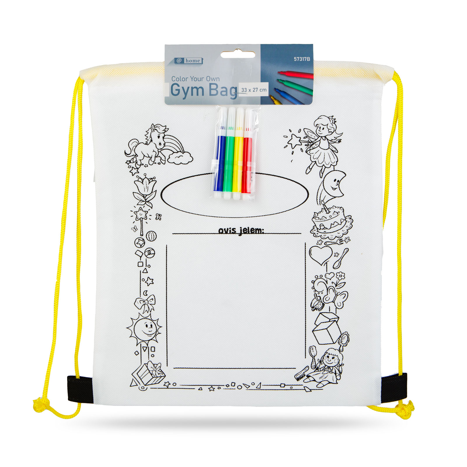 Színezd magad tornazsák, hátizsák színes filctoll készlettel. Kettő az egyben: tornazsák és foglalkoztató gyerekeknek. Színezéskor a zsák két anyaga közé vastagabb papírt kell tenni, hogy a hátoldalra ne kerüljön festék.