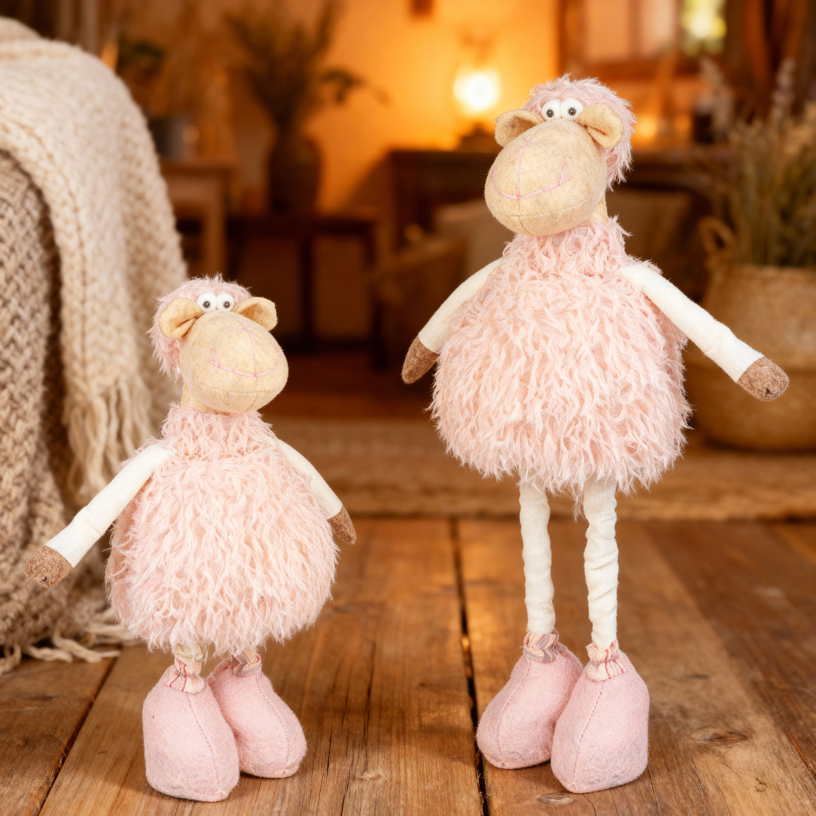 Ez az elegáns, bájos, textil bárány dekoráció kiváló választás otthona vagy irodája díszítésére. Vidám és barátságos megjelenésével meghitt hangulatot teremt, legyen szó húsvéti alkalomról vagy az év bármely napjáról. A teleszkópos lábaknak köszönhetően a bárány állítható magasságú, így könnyedén illesztheti bármilyen térbe. Puha, prémes anyaga kellemes tapintású, míg harmonikus színvilága eleganciát kölcsönöz környezetének.