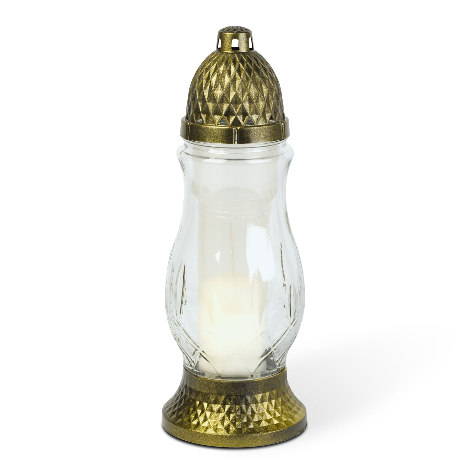 Ez a klasszikus stílusú mécses méltó kiegészítője lehet megemlékezéseknek, ünnepeknek vagy temetőlátogatásoknak. Az áttetsző tartály elegáns megjelenést kölcsönöz, míg a tartozék kupak a láng védelmét szolgálja. A mécses tartós, időjárásálló anyagból készült, így kültéri használatra is ideális. Megbízható égési idejével hosszú időn keresztül biztosítja a béke és tisztelet kifejezését.