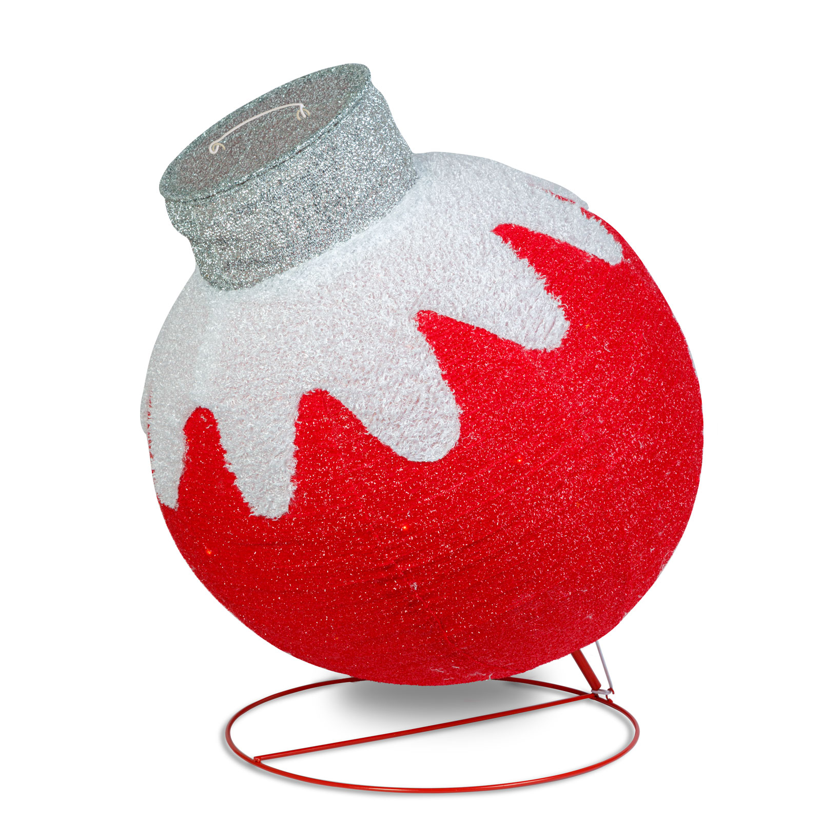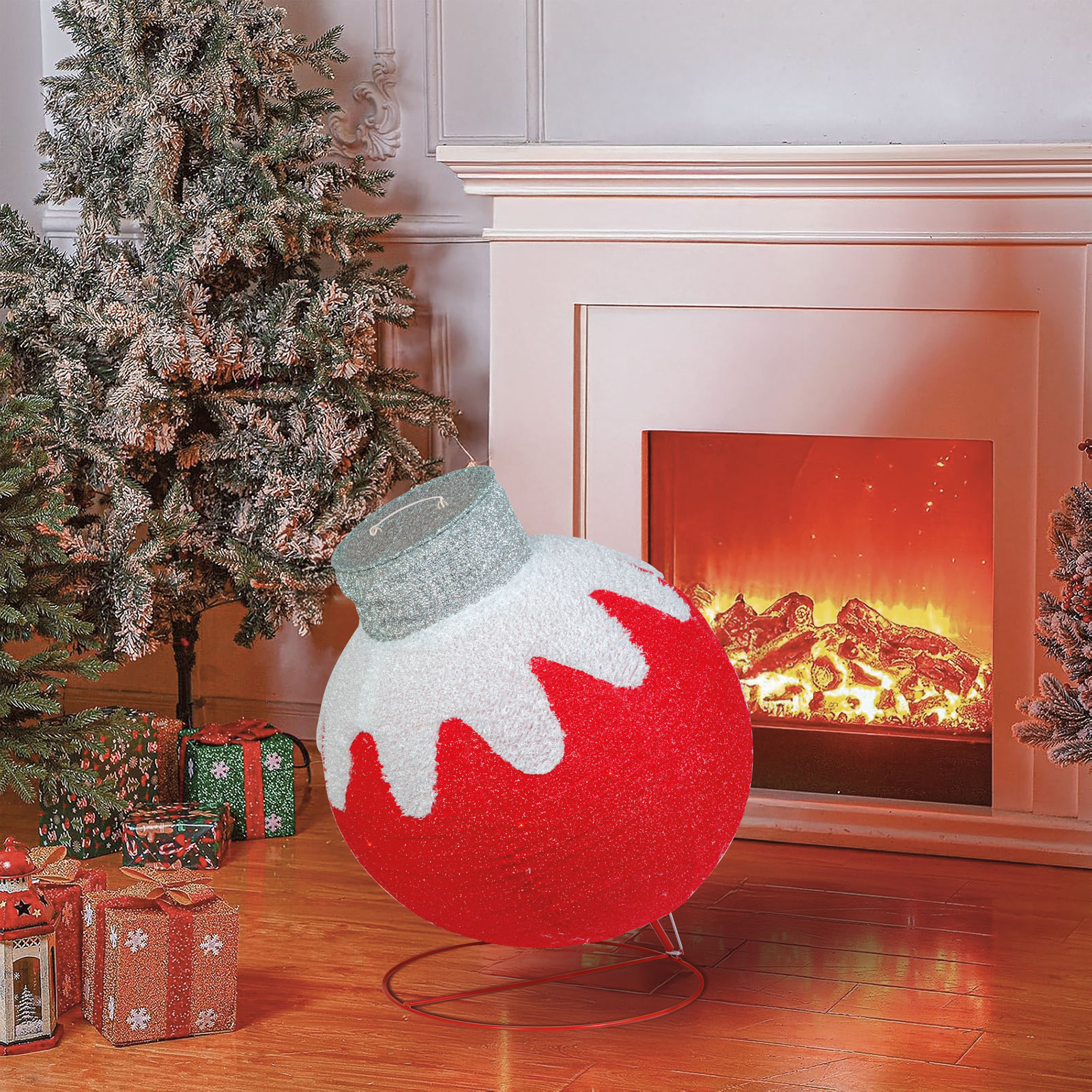 Lenyűgöző karácsonyi gömbdísz melegfehér LED világítással. A dekoráció 60 darab LED-del világít, amelyek közül 10 darab villogó fényhatást biztosít. A gömb, havas felső résszel, piros színű, csillogó hatású felülettel rendelkezik. Ideális választás beltéri vagy fedett kültéri használatra, különösen bejáratok, erkélyek, teraszok ünnepi díszítésére. Az alacsony feszültségű, IP20-as besorolással rendelkező tápegység időzítő funkcióval is rendelkezik, így energiatakarékosan működtethető.